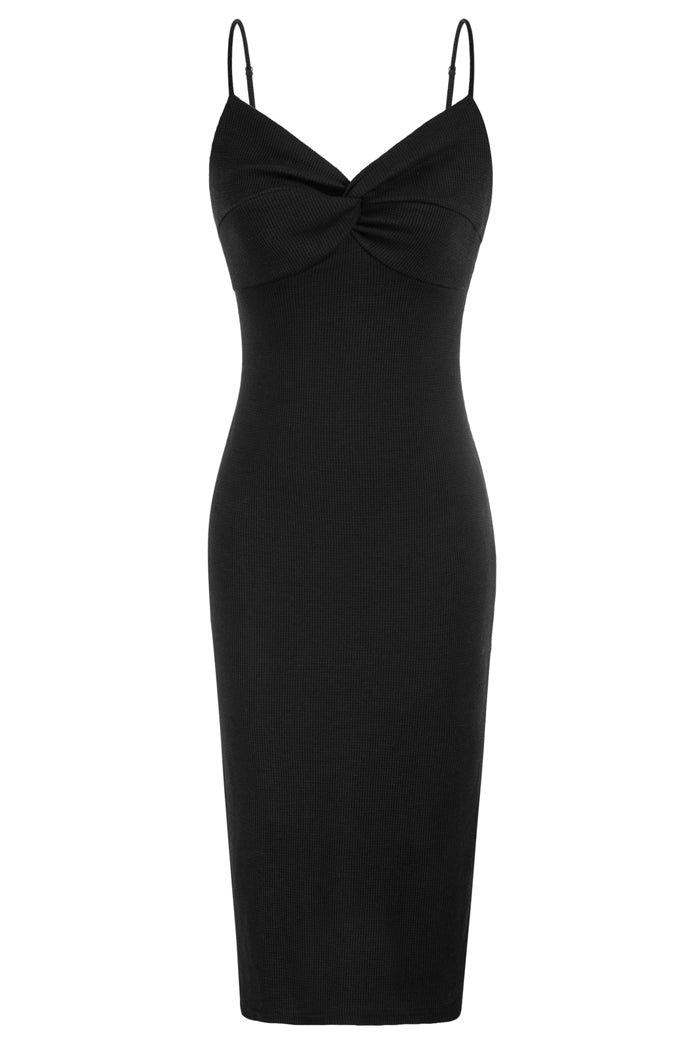 Knotted Bodice Cami Dress Spaghetti Straps Side Slit Bodycon Dress