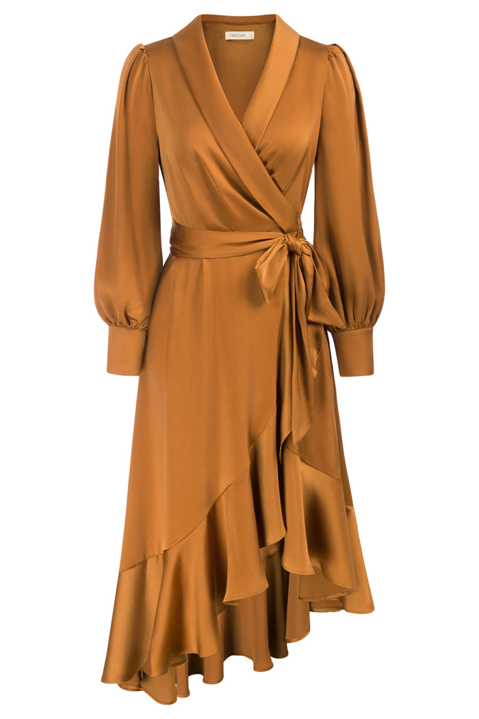 Shawl Lapel Dress Long Sleeve Irregular Hem A-Line Dress