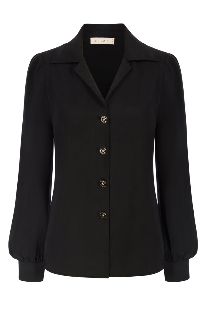 Lapel Collar Shirt Loose Fit Long Sleeve V-Neck Button-up Tops
