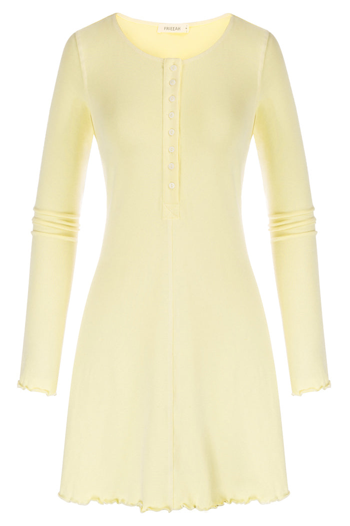 A-Line Dress with Belt Long Sleeve Ruffled Crew Neck Dress
