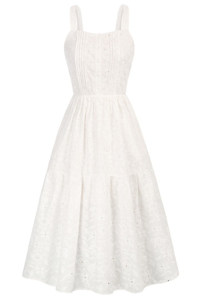 Cotton Maxi Dress Square Neck Elastic Waist Tiered A-Line Dress