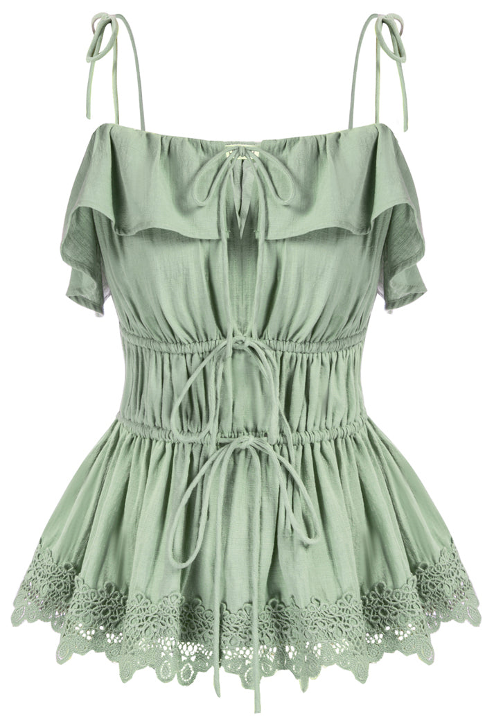 Tie Shoulder Elastic Waist Peplum Hem Tops